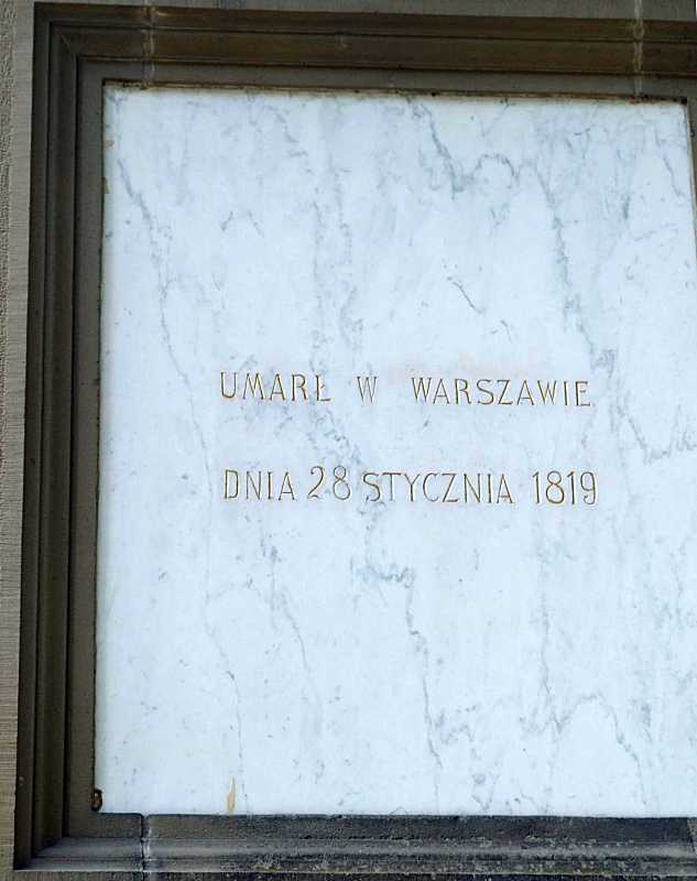 Напис (польською мовою): «Помер у Варшаві 28 січня 1819 р.»