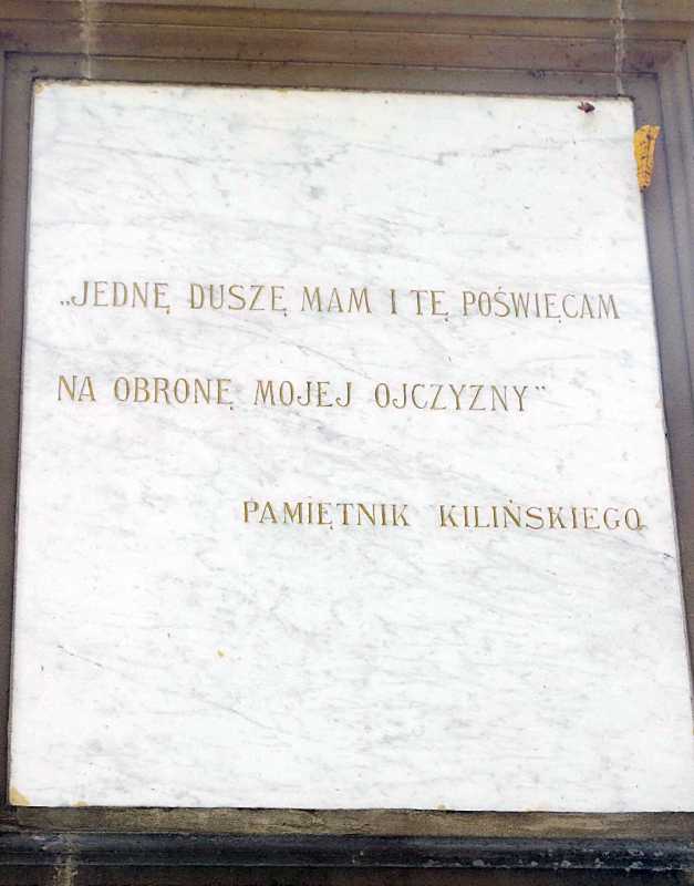 Напис (польською мовою): «Одну думу маю і ту віддам на оборону моєї вітчизни (щоденник Кілінського)».
