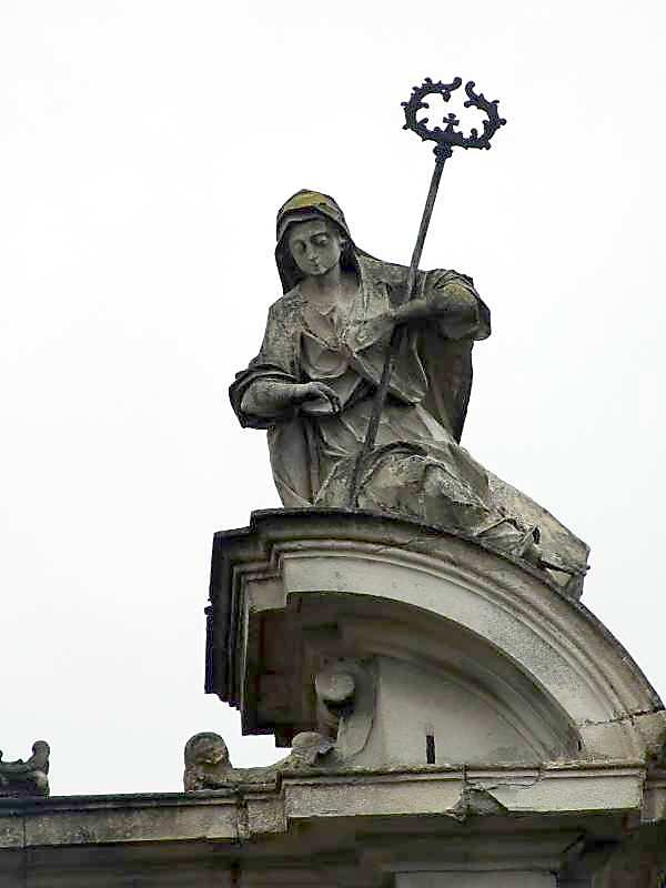 Права постать (католицька церква)Розмір зображення: 600:800 піксел 15 вересня 2007 р. Фото М.І.Жарких. Алегорична постать “Католицька церква” роботи М.Філевича (1770 р.). |