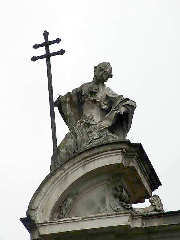 Ліва постать (православна церква)Розмір зображення: 600:800 піксел 15 вересня 2007 р. Фото М.І.Жарких. Алегорична постать “Православна церква” роботи М.Філевича (1770 р.). |