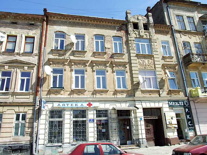 Під № 3 до 1939-го містилися перукарня Ґутмана, про що свідчить напис на фасаді, що зберігся донині, гуртова торгівля борошном Бухмана, молочарня Кеффа, пекарня Байтлера й аптека Дожавеца. Аптека в цьому будинку розташована і тепер.