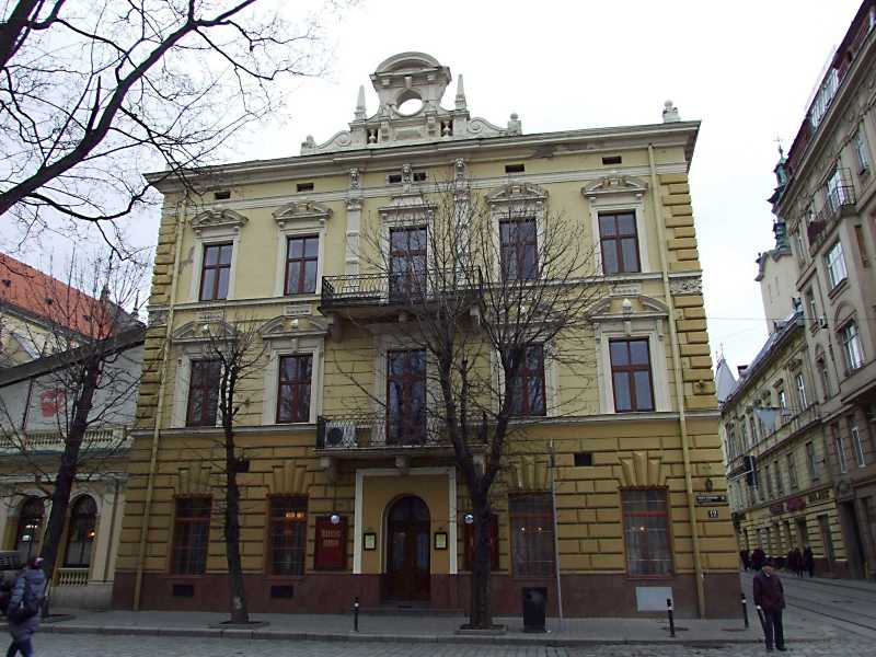2012 р. Фасад по просп. Свободи Розмір зображення: 800:600 піксел 8 квітня 2012 р. Фото М.І.Жарких. Вкладені елементи Фрагмент 3-го поверху Вікно 3-го поверху Вікно 2-го поверху