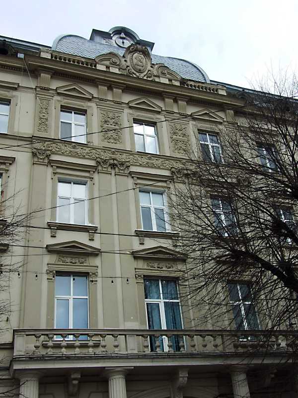 2012 р. Центральна частина головного фасаду Розмір зображення: 600:800 піксел 7 квітня 2012 р. Фото М.І.Жарких. Вкладені елементи Фронтон