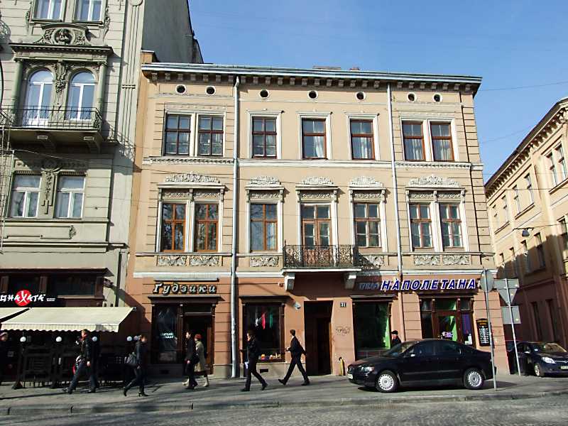 2012 р. Головний фасад Розмір зображення: 800:600 піксел 4 квітня 2012 р. Фото М.І.Жарких. Вкладені елементи Вікна 2-го поверху