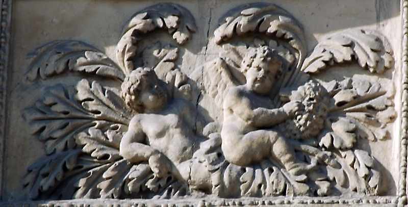 Рельєфна композиціяРозмір зображення: 800:406 піксел Практично ідентична композиції в простінках 3, 12. 13 вересня 2008 р. Фото М.І.Жарких. |