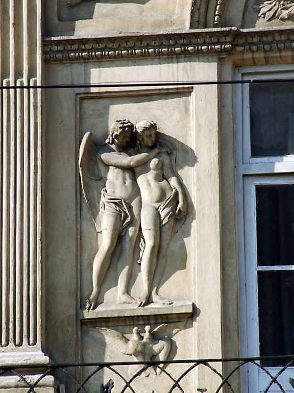 Ліва ніша з рельєфом Розмір зображення: 600:800 піксел 13 вересня 2008 р. Фото М.І.Жарких. Вкладені елементи Рельєфна композиція “Амур і Психея” (+)
