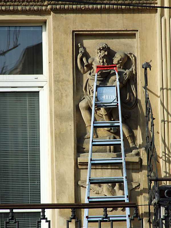 Рельєфна композиція “Еней рятує батька”Розмір зображення: 600:800 піксел 4 квітня 2012 р. Фото М.І.Жарких. У 2012 р. Еней узяв собі на допомогу драбину-стремянку… |