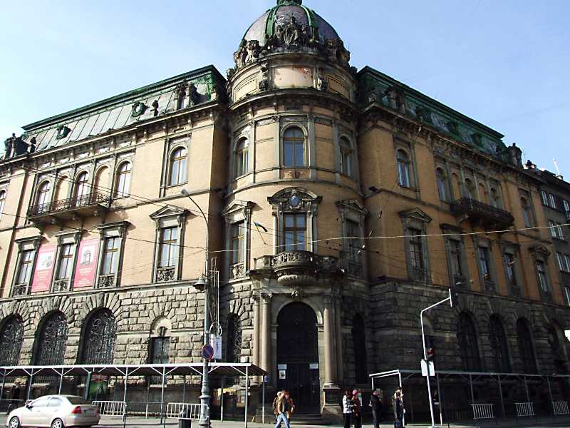 2012 р. Загальний вигляд Розмір зображення: 800:600 піксел 4 квітня 2012 р. Фото М.І.Жарких. Вкладені елементи Скульптурна група «Ощадність» Балкон 2-го поверху Наріжний вхід