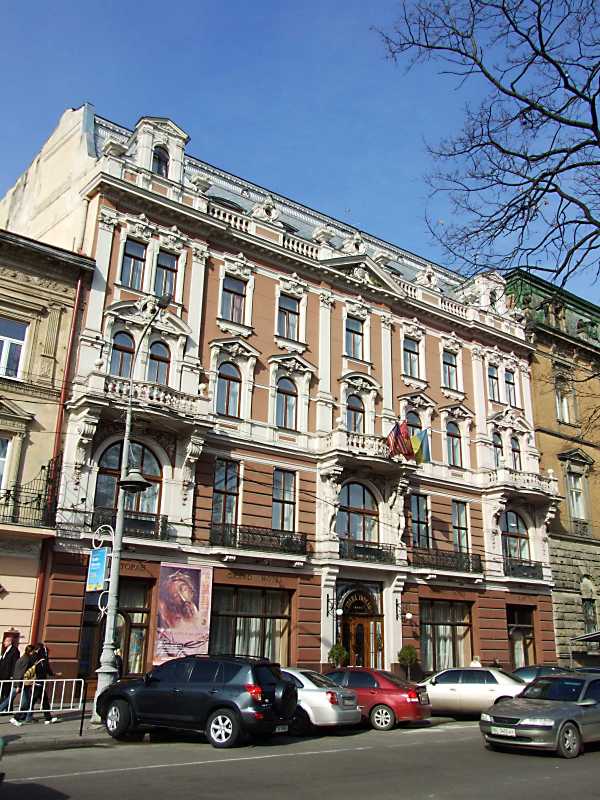 Гранд-отель (просп.Свободи, 13) споруджено в 1893 р. за проектом Е.Герматника. Скульптури на фасаді (зокрема, атланти) виконані Л.Марконі.