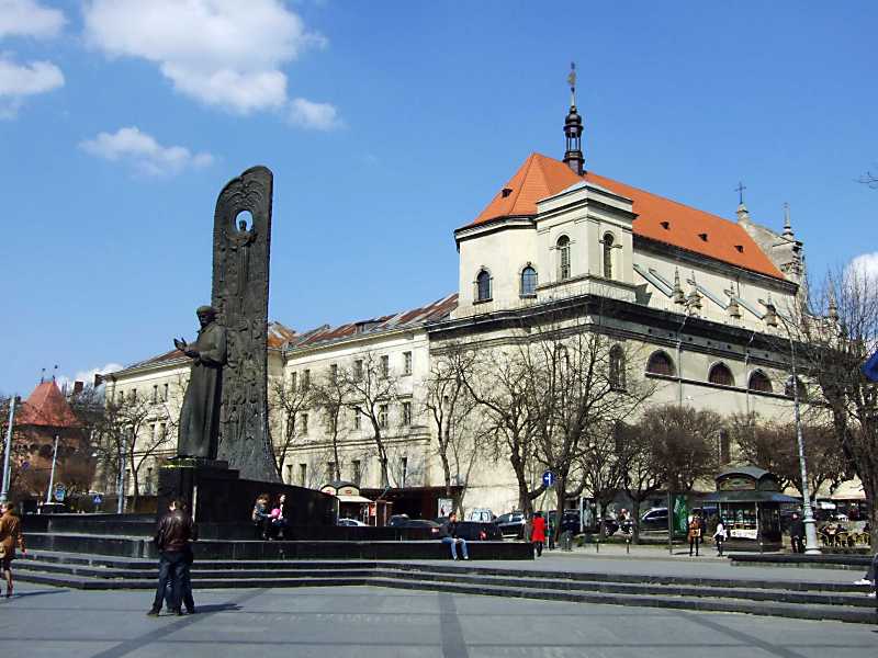 2013 р. Загальний вигляд з позиції А3 на тлі кляштора єзуїтівРозмір зображення: 800:600 піксел 16 квітня 2013 р. Фото М.І.Жарких. |
