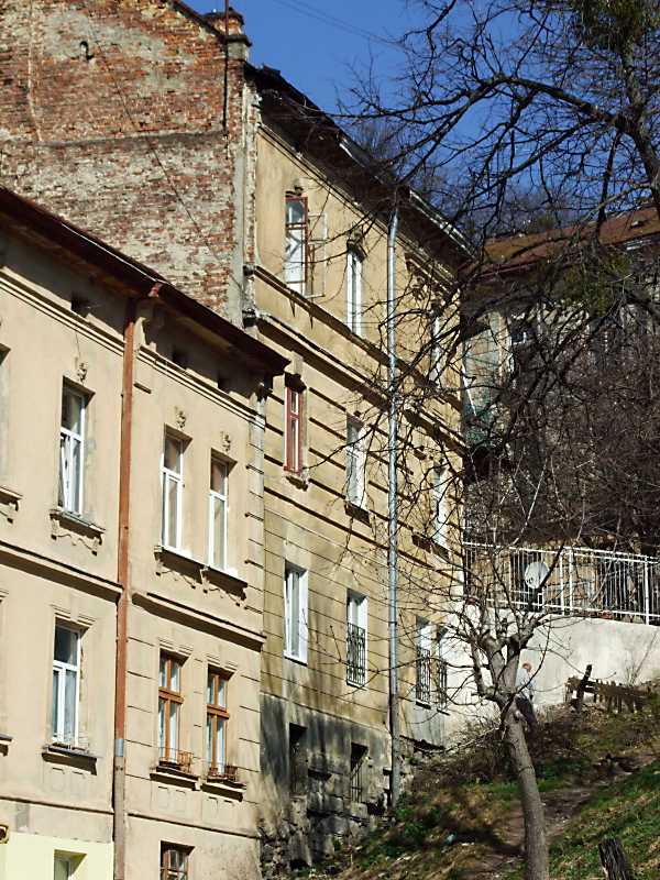 Житловий будинок (№ 1) Розмір зображення: 600:800 піксел 18 квітня 2013 р. Фото М.І.Жарких. Вкладені елементи 2013 р. Загальний вигляд з вул. Ужгородської