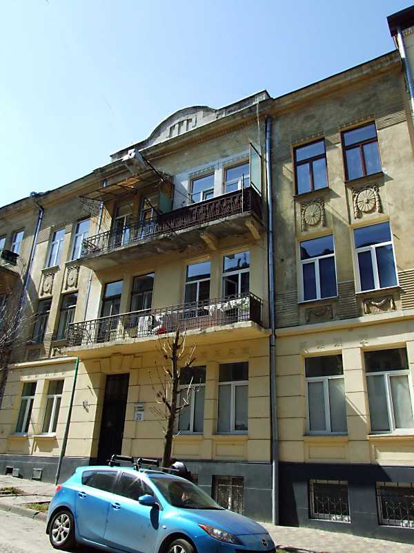 Житловий будинок (№ 20) Розмір зображення: 600:800 піксел 19 квітня 2013 р. Фото М.І.Жарких. Вкладені елементи 2013 h. Сецесійні вікна 2-го поверху
