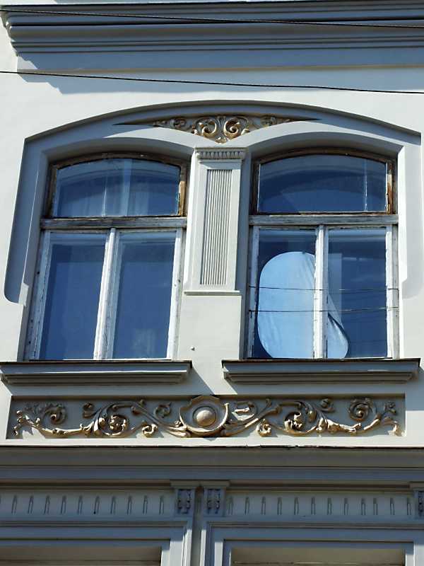 2013 р. Сецесійні вікна 3-го поверху Розмір зображення: 600:800 піксел 19 квітня 2013 р. Фото М.І.Жарких. Попередня сторінка | Вище | Наступна сторінка