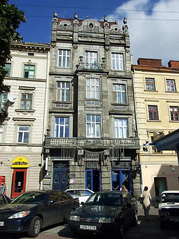 Колишній дім графині Зофії Лясоцької. Збудований у 1909–1911 роках Адольфом Піллером за конкурсним проектом Тадеуша Новаковського. Металеві конструкції будинку виконані за проектом Зигмунта Піотровича.