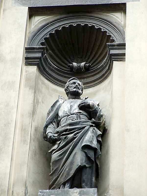 2007 р. Скульптура святого в ніші (ліве прясло, верхній ярус)Розмір зображення: 600:800 піксел 13 вересня 2007 р. Фото М.І.Жарких. |