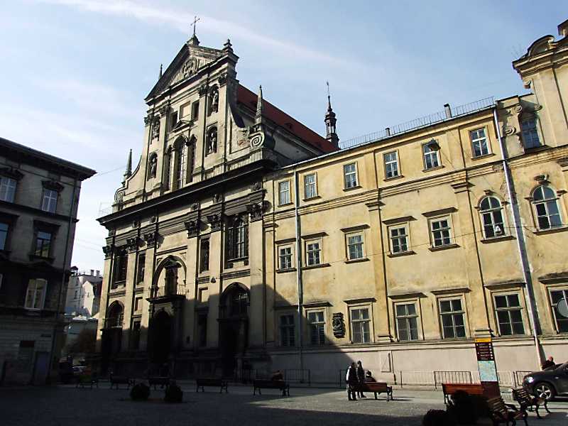 Костел і частина фасаду колегії Розмір зображення: 800:600 піксел 4 квітня 2012 р. Фото М.І.Жарких. Вище | Наступна сторінка