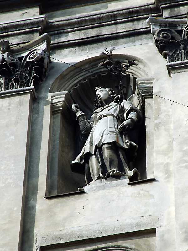 Скульптура святого (праве прясло, верхній ярус)Розмір зображення: 600:800 піксел 4 квітня 2012 р. Фото М.І.Жарких. |