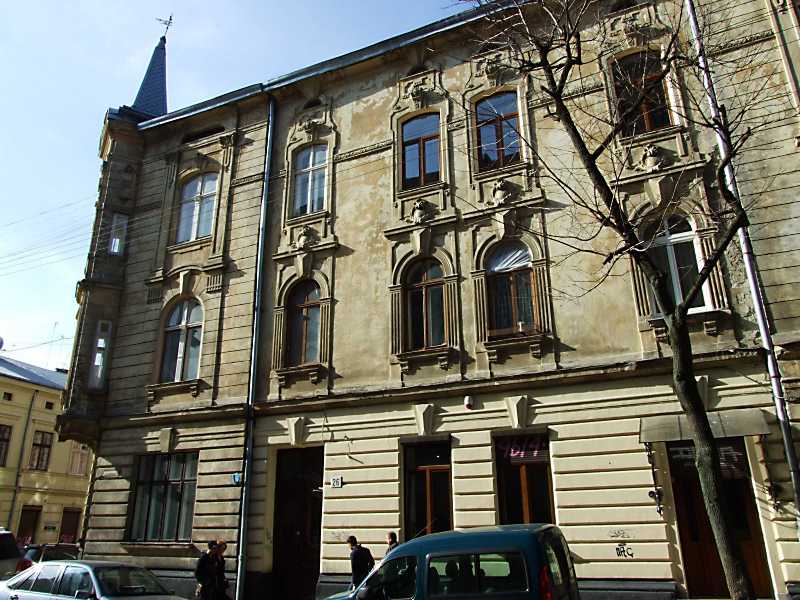 2013 р. Фасад по вул. Туган-Барановського Розмір зображення: 800:600 піксел 16 квітня 2013 р. Фото М.І.Жарких. Вкладені елементи Вікно 2-го поверху