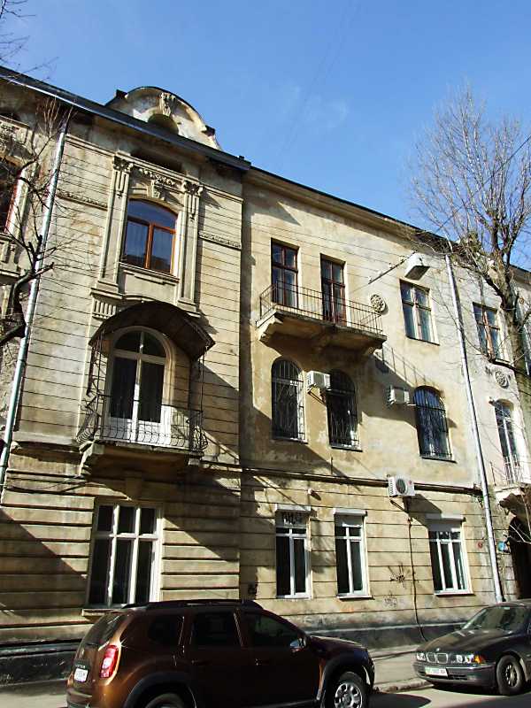 2013 р. Фрагмент фасаду по вул. Туган-БарановськогоРозмір зображення: 600:800 піксел Праворуч – фрагмент будинку 24. 16 квітня 2013 р. Фото М.І.Жарких. |
