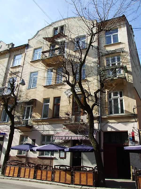 Житловий будинок (№ 30) Розмір зображення: 600:800 піксел 16 квітня 2013 р. Фото М.І.Жарких. Вкладені елементи Меморіальна дошка В. Стернюку 2013 р. Загальний вигляд