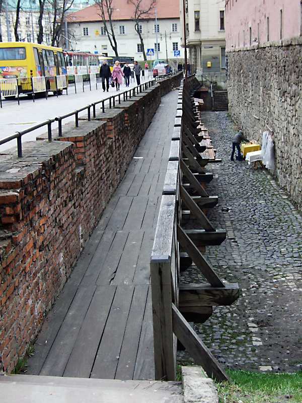 Мур на вул. Підвальній, 5Розмір зображення: 600:800 піксел Фрагмент Низького муру зі східного боку міста знаходиться на вул. Підвальній проти міського арсеналу (Підвальна 9). |