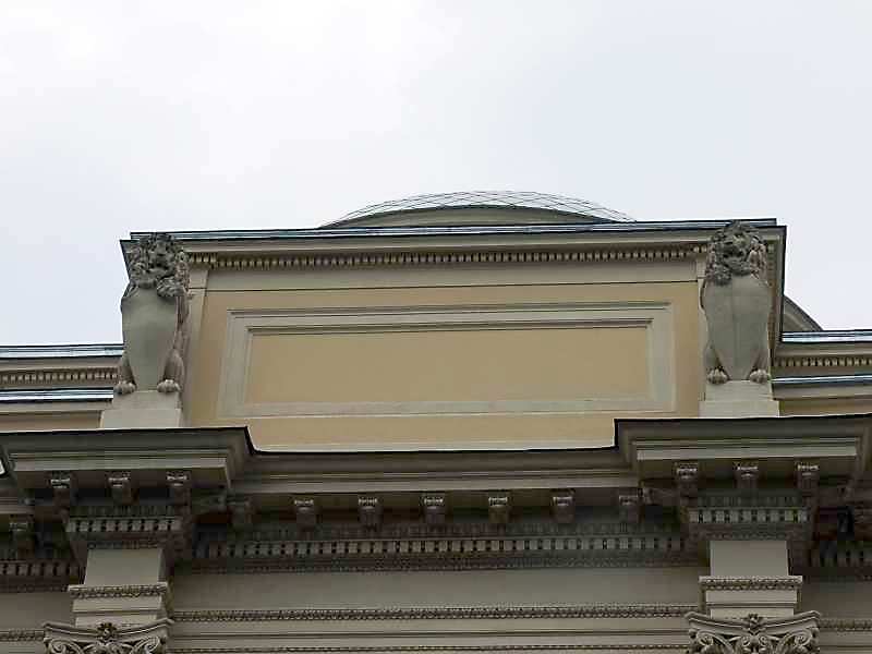 Фронтон торцевого фасаду Розмір зображення: 800:600 піксел 15 вересня 2007 р. Фото М.І.Жарких. Вище | Наступна сторінка