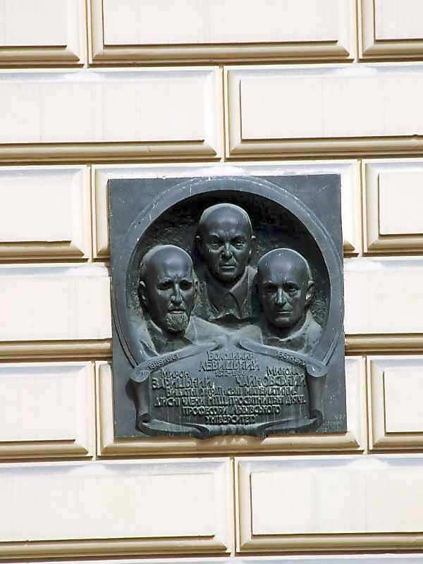 Меморіальна дошка математикамРозмір зображення: 600:800 піксел 15 вересня 2007 р. Фото М.І.Жарких. Меморіальна дошка роботи скульптора Л.Яремчука, 1997 р. |