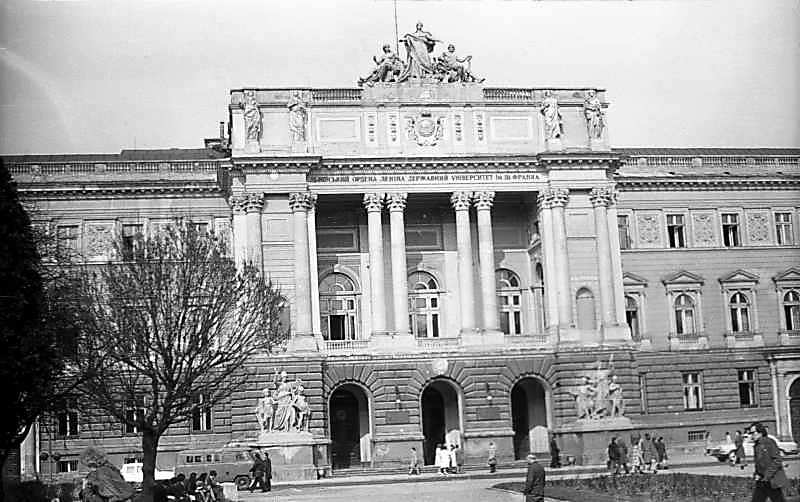 1976 р. Центральна частина головного фасадуРозмір зображення: 800:502 піксел 1976 р. 23 квітня. Фото М.І.Жарких. Негатека, № A112-07. |