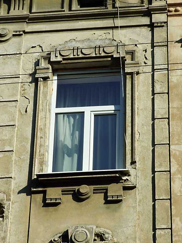 2013 р. Сецесійне вікно 3-го поверху Розмір зображення: 600:800 піксел 18 квітня 2013 р. Фото М.І.Жарких. Вище | Наступна сторінка