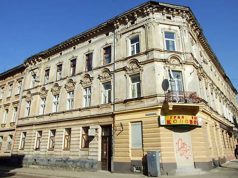 Житловий будинок (№ 9)Розмір зображення: 800:600 піксел Ліворуч – вулиця Вагилевича, праворуч – вулиця Зелена. 18 квітня 2013 р. Фото М.І.Жарких. |