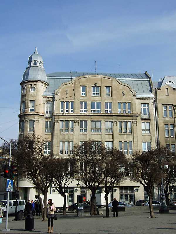 В давнину на цьому місці стояла Галицька брама. Після її розбирання було збудовано 2 кам’яниці. В 1907 р. ними володів Теодор Балабан, який замовив спорудення нового будинку (проект А.Захаревича та Ю.Сосновського). В 1931 р. за проектом В.Дайчака реконструйовано 1-й поверх для міської ощадної каси.