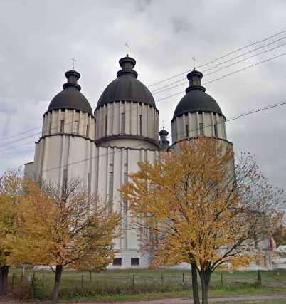 Фото з панорами Google, жовтень 2011 р. Церква св.Володимира та Ольги (вул.Василя Симоненка, № 5а). Проект її виконав у 1992 р. архіт. М.Вендзилович. Греко-католицька (станом на 2001 р.). |