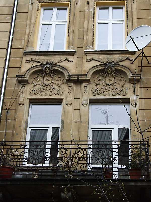 2012 р. Балкон 2-го поверху Розмір зображення: 600:800 піксел 7 квітня 2012 р. Фото М.І.Жарких. Вкладені елементи Рельєфний тимпан