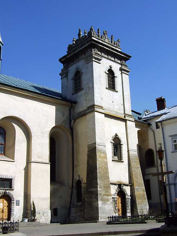 Башта Розмір зображення: 600:800 піксел 18 квітня 2013 р. Фото М.І.Жарких. Вкладені елементи Аттик зі скульптурами. Вигляд з південного заходу Аттик зі скульптурами. Вигляд з півдня (+) Вікно верхнього ярусу. Вигляд з південного заходу Вікно верхнього ярусу. Вигляд з півдня Ніша середнього ярусу зі скульптурою. Вигляд з південного заходу Ніша середьного ярусу зі скульптурою. Вигляд з півдня (+) Південний портал башти. Вигляд з півдня (+) Південний портал башти. Вигляд з південного сходу