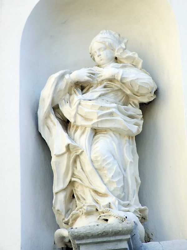 Скульптура «Непорочне зачаття» в середній нішіРозмір зображення: 600:800 піксел 18 квітня 2013 р. Фото М.І.Жарких. |