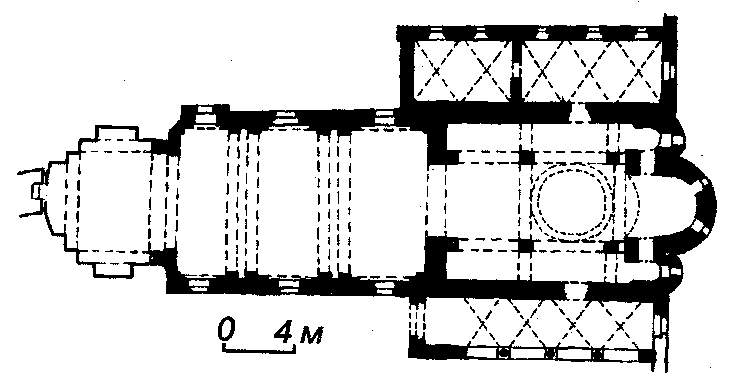 Собор первісно являв собою чотиристовпний хрещато-баневий храм візантійського типу. На перехресті середньої нави з трансептом здіймається підбанник, перекритий всередині банею, а зовні завершений наметом. Дванадцятигранна форма підбанника, конструкція бані з ребрами, викладеними з випалених глиняних глечиків, та первісна покрівля намету з кам’яних плит є характерними рисами дав-ньовірменського зодчества. З галицькою архітектурною школою 12 – 13 ст. пам’ятку зближує тринавова структура і техніка мурування товстих (140 см) стін з білого тесаного каменю.