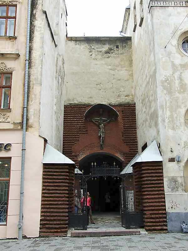 Західний двір (з боку вул.Краківської) Розмір зображення: 600:800 піксел Вкладені елементи 2006 р. Загальний вигляд (+) 2007 р. Загальний вигляд (+) 2009 р. Розп’яття над західним входом