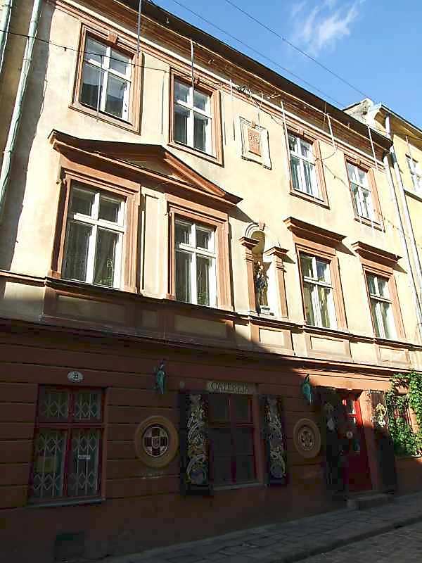 ЖИЛОЙ ДОМ, XVII в. (ул. Армянская, 33). Дата на фасаде «1887» свидегельствует о реконструкции. Кирпичный, прямоугольный в плане, трехэтажный, первый этаж рустован, завершен карнизом, окна увенчаны сандриками. [Памятники градостроительства и архитектуры УССР. – К.: Будівельник, 1985 г., т. 3, с. 22].