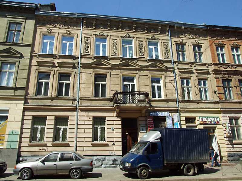 Житловий будинок (№ 6) Розмір зображення: 800:600 піксел 19 квітня 2013 р. Фото М.І.Жарких. Вкладені елементи 2013 р. Сецесійне вікно 2-го поверху