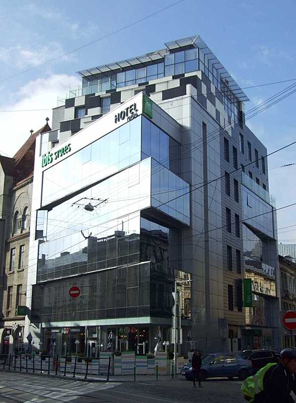 Будинок (№ 1)Розмір зображення: 588:800 піксел Фото М.І.Жарких, 4 жовтня 2019 р. Ліворуч – вул. І. Франка, праворуч – вул. В. Шухевича. |