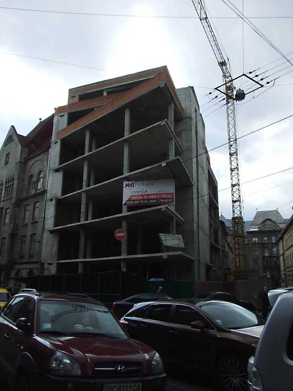2012 р. Загальний виглядРозмір зображення: 600:800 піксел 4 квітня 2012 р. Фото М.І.Жарких. Ліворуч – вул. І. Франка, праворуч – вул. В. Шухевича. |