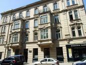 Будинок мпоруджено фірмою З.Кендзерського в 1898 р., скульптури роботи Б.Солтиса.