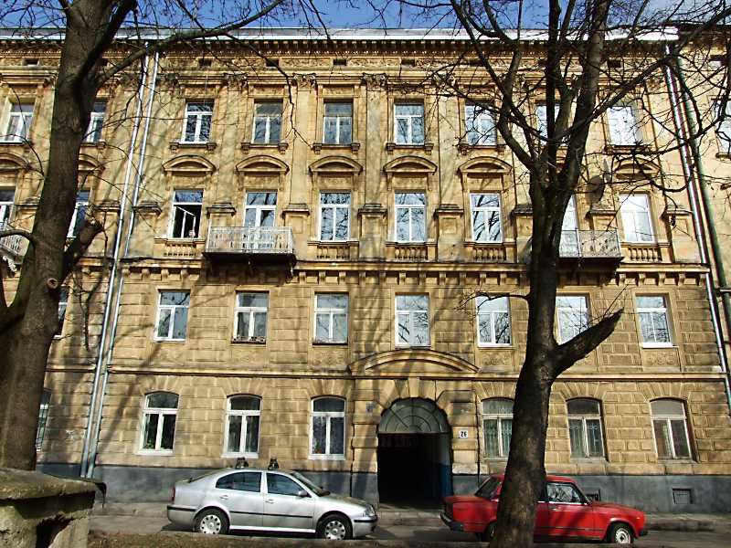 2012 р. Права частина головного фасаду Розмір зображення: 800:600 піксел 7 квітня 2012 р. Фото М.І.Жарких. Вкладені елементи Вікно 3-го поверху Вікно 2-го поверху Проїзд