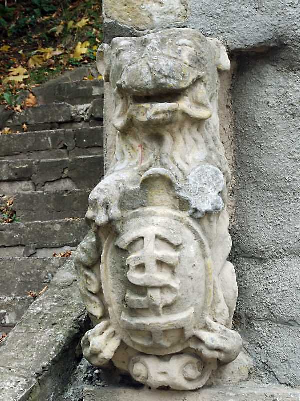 Ліва скульптура лева Розмір зображення: 600:800 піксел 17 жовтня 2008 р. Фото М.І.Жарких. Вкладені елементи Вигляд у 3/4