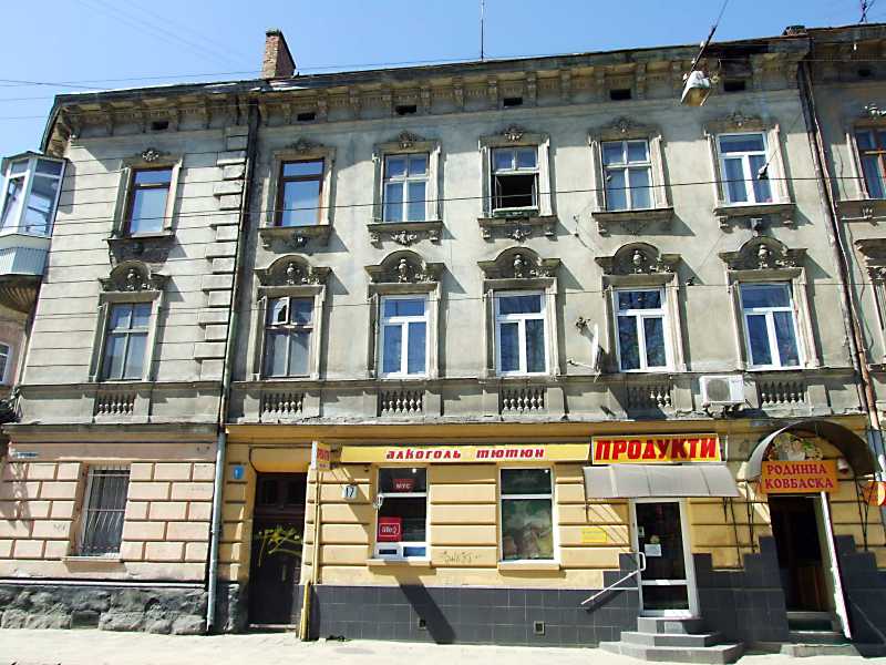 2013 р. Фасад по вул. Замарстинівській Розмір зображення: 800:600 піксел 18 квітня 2013 р. Фото М.І.Жарких. Вкладені елементи Вікно 3-го поверху Вікно 2-го поверху (+)