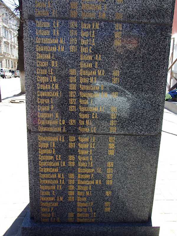 Фрагмент стели з іменами страчених Розмір зображення: 600:800 піксел 18 квітня 2013 р. Фото М.І.Жарких. Вище | Наступна сторінка