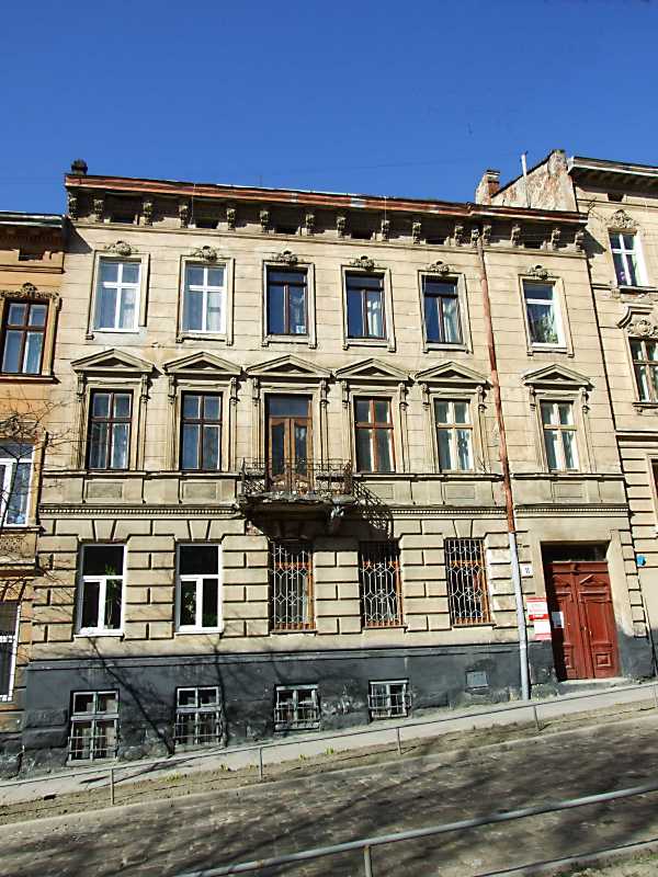 2013 р. Головний фасад Розмір зображення: 600:800 піксел 18 квітня 2013 р. Фото М.І.Жарких. Вкладені елементи Вікно 3-го поверху Балкон 2-го поверху