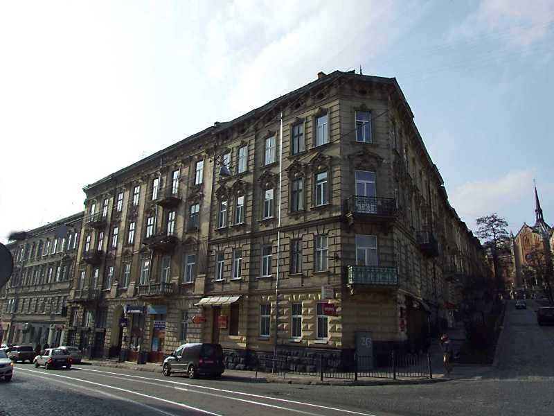2012 р. Загальний виглядРозмір зображення: 800:600 піксел 7 квітня 2012 р. Фото М.І.Жарких. Ліворуч – вул. Личаківська, праворуч – вул. Заньковецької. |