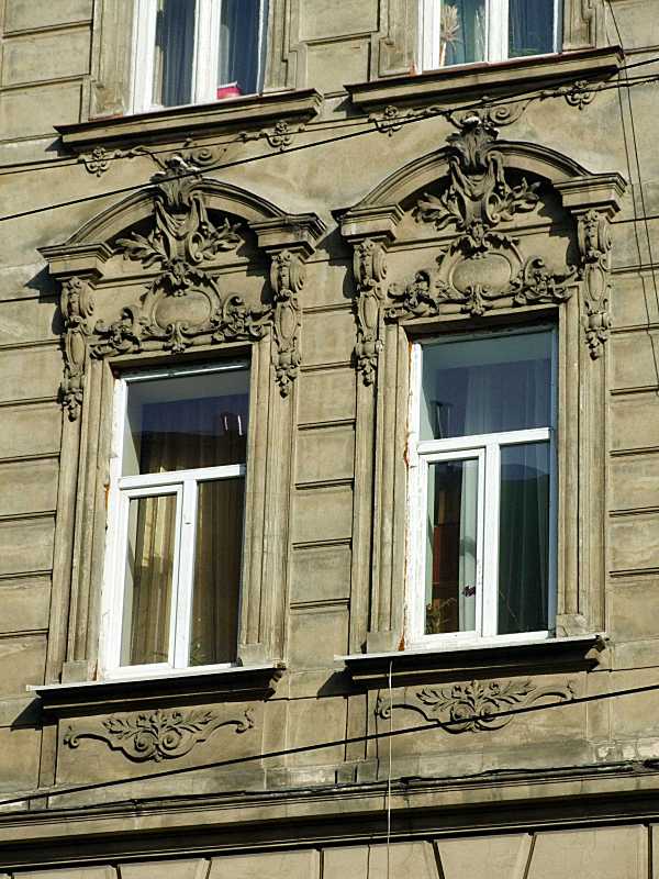 Вікна 3-го поверхуРозмір зображення: 600:800 піксел На фасаді по вул. Личаківській. Фото М.І.Жарких, 4 жовтня 2019 р. |
