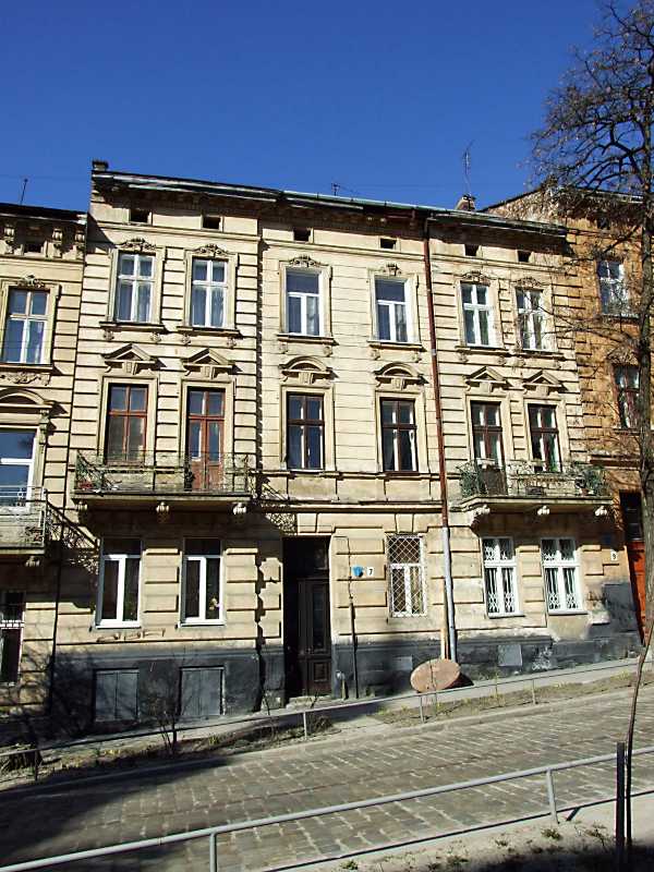 2013 р. Головний фасад Розмір зображення: 600:800 піксел 18 квітня 2013 р. Фото М.І.Жарких. Вкладені елементи Вікно 3-го поверху Балкон 2-го поверху Вікно 2-го поверху